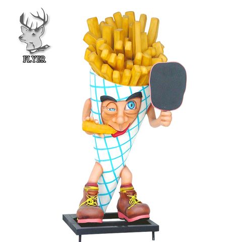 Custom Fast Food Restaurante Decoração Estátua Fibra De Vidro Fry Francês Figura Hamburger Figura Cachorro Quente Homem Resina Estátua